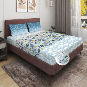 RD TREND 100% Pure Cotton Elastic Fitted Double Bedsheets With 2 Pillow Covers(Turkish Blue)