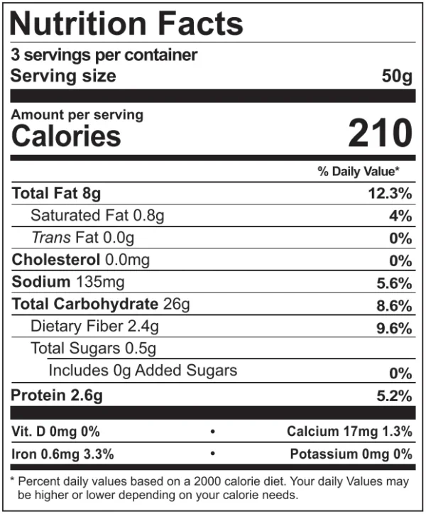Ingredients: Rice Flour, Kodo Millet Flour, Roasted Gram Flour, Butter, Garlic, Fennel Seeds, Chilly Powder, Salt, Asafoetida & Vegetable Oil.